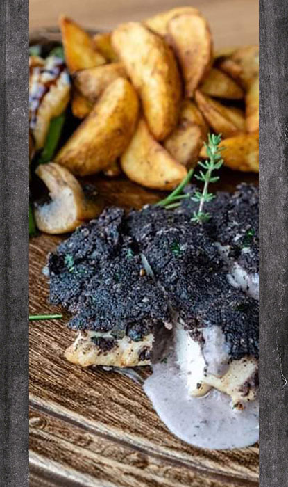 Συνοδεύεται με πράσινη σαλάτα, με φρέσκια mozzarela & dressing φρέσκιας ντομάτας